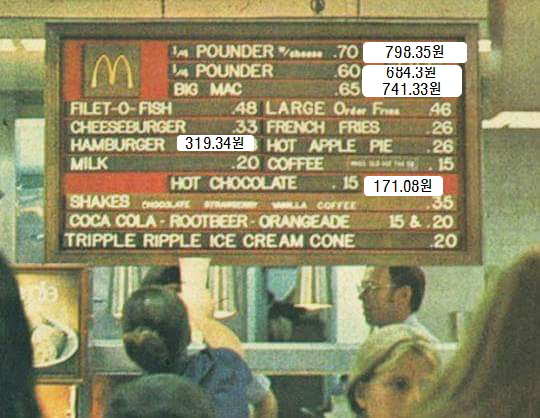 1973년 미국, 맥도날드 메뉴판과 가격