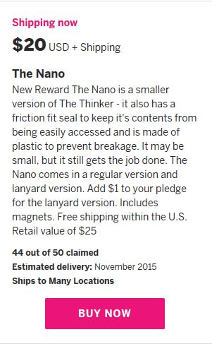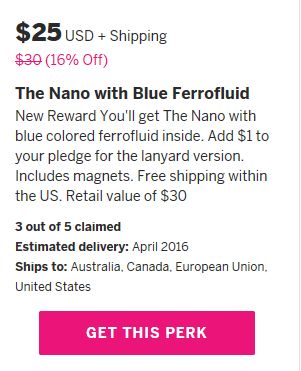 먼저 20불이네요 배송 포함이고 The Nano를 받네요 기존 버전보다 더 작은 버전입니다. 그리고 가지고 놀기위한 자석들도 들어있네요. 미국내 한정해서 무료 배송입니다. 1달러 추가하면 the landyard 버전을 얻는다는데 Landyard가 무슨뜻인지 모르겠네요.